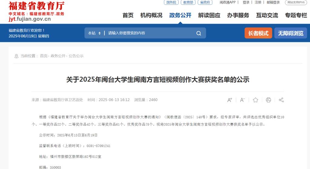 我院始终坚持以习近平新时代中国特色社会主义思想为指导,全面贯彻党的教育方针,将美育作为立德树人的重要载体,引领学生树立正确的历史观、民族观、国家观、文化观。闽台大学生闽南方言短视频创作大赛是为加强两岸青年文化教育交流,促进文化传承保护,弘扬中华优秀传统文化,连通两岸乡情民心。我院学子喜获佳绩,充分展示了他们对中华优秀传统文化的深厚认同感与弘扬使命感。