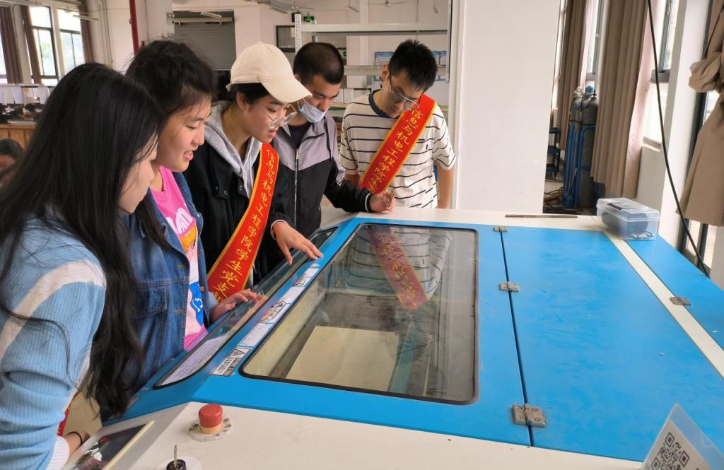 图4 志愿者和心青年观看激光切割