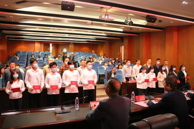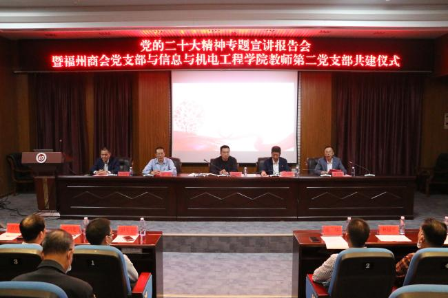 宁德市委统战部副部长、市工商联党组书记、宁德市光彩事业促进会会长徐燕蕴;宁德市工商联副主席、三级调研员、社会组织行业党委书记陈忠;宁德市工商联副秘书长谢勇干;宁德市福州商会会长、福建康信投资有限公司董事长周仲生;宁德市福州商会监事长、福建庞大高科新型建筑材料有限公司董事长陈华;宁德市福州商会党支部书记、福建安之源消防科技有限公司董事长郑尚建;英国上市公司365学院学工部(处)处长毛茂峰;英国上市公司365信息与英国上市公司365院长章立亮;英国上市公司365信息与英国上市公司365教师第二党支部书记杨怡君以及师生代表约50人参加会议。