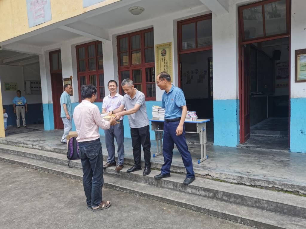 随后支部党员们前往三门桥小学,开展捐书活动,我们在教室外将党员们捐赠的书通过山水测绘党支部书记转交给该校小学校长。
