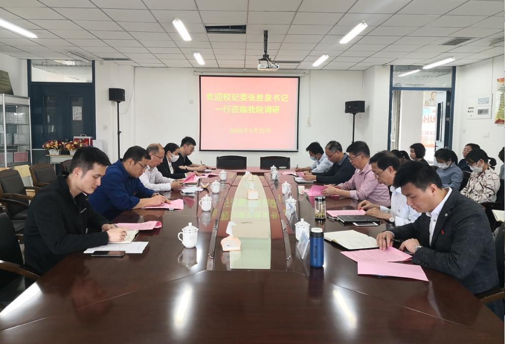(图一:校纪委书记张胜泉听取调研汇报)
