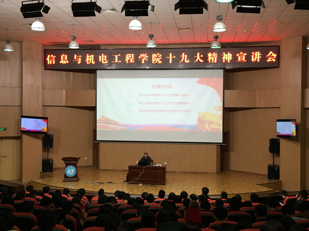 为深入学习宣传贯彻党的十九大精神,12月10日,信息与英国上市公司365党的十九大精神宣讲会在英国上市公司365图书馆二楼报告厅举行,宣讲会听众总共将近1000人,分两场举行。