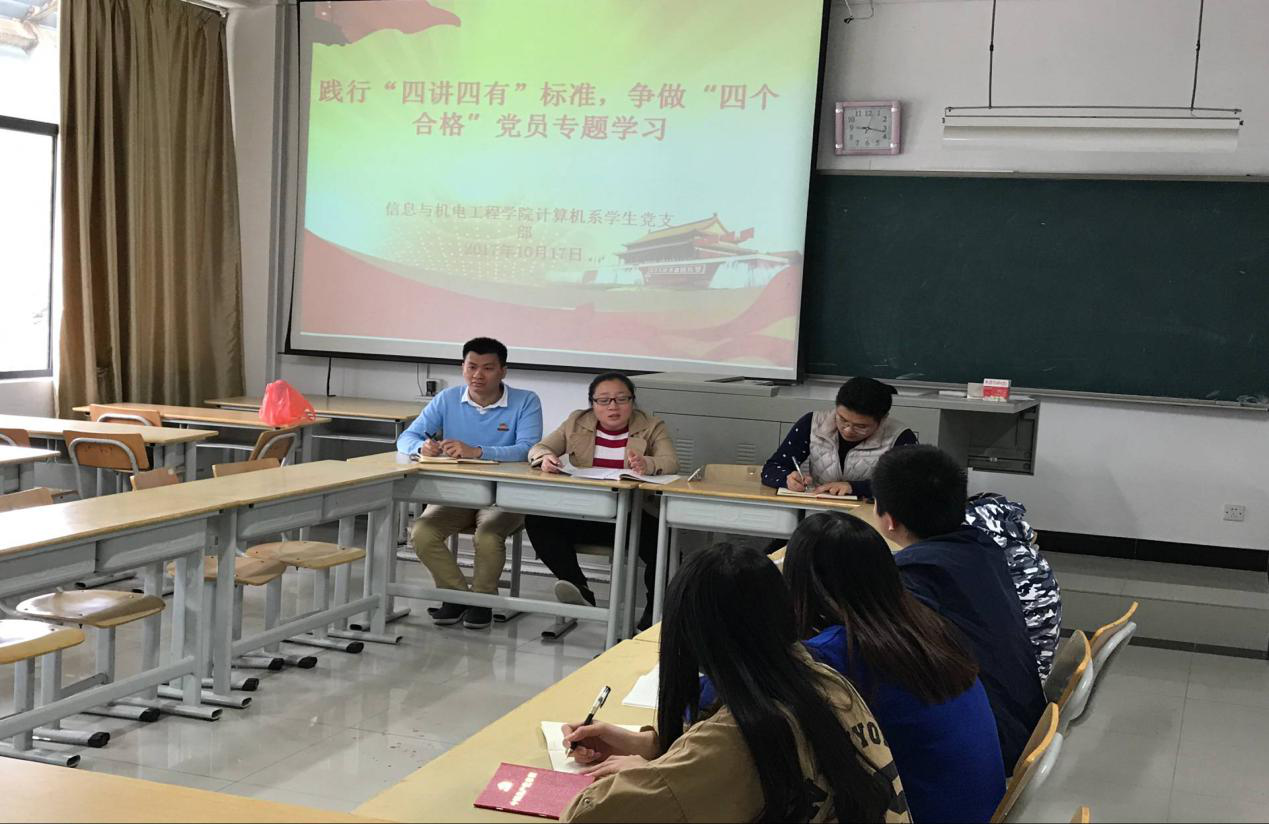 2017年10月17日,信息与英国上市公司365计算机系学生党支部在DB407召开全体党员大会,践行“四讲四有”标准,争做“合格党员”主题党日活动。“四讲四有”高度概括了新时期合格共产党员应该具备的政治要求、道德要求、纪律要求、行为要求,是具有深刻内在联系的辩证统一体。践行“四讲四有”合格党员标准,每个党员要把自身思想政治建设放在首位,解决自身存在的理想信念模糊、党的意识淡化、党员宗旨淡薄的问题。通过学习,全体党员领会了精神实质、学会科学方法、解决现实问题,最终实现从学入思、从思导行,做思想建党的引领者。同时,“四讲四有”是我们党对党员提出的新要求,是规范和衡量每个党员是否合格的基本尺度,是新时期广大党员以知促行、知行合一的行动指南。