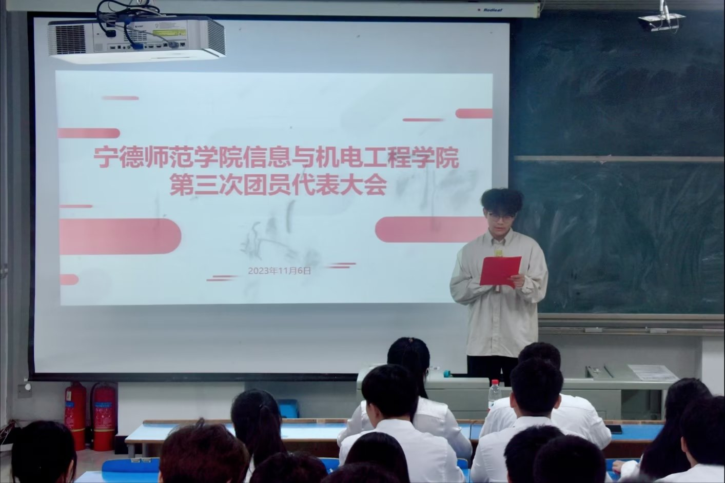 为全面深入贯彻党的二十大精神和共青团第十九次全国代表大会精神,进一步发挥好学生组织的桥梁纽带作用,汇聚青春智慧,点燃青春活力,我院于2023年11月6日19时在求是楼DB201召开第三次团员代表大会。院团委书记王佳佳老师、辅导员陈上鑫老师莅临现场,我院各班共76名团员代表参与会议。