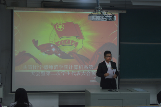 首先,大会筹备委员会向大会做《计算机系双代会筹备工作报告》及《代表资格审查报告》,本次大会应到代表60人,实到59人,符合规定人数,可以进行选举。随后,大会审议并通过了《计算机系团委工作报告》、《计算机系学生会工作报告》和《计算机系双代会选举草案》。在选举环节,由团委委员候选人、学生会委员候选人依次上台进行选举演讲,在总监票人的监督下,按候选人多于应选人数20%的比例规定,进行差额选举。监票人检查票箱,检查完毕后,加封落锁。工作人员当众展示选票封印完好、计票人领取选票后,由选举大会总监票人宣布选票发放办法,并由计票人发放选票。在确保每位代表都拿到选票之后,总监票人宣读填写、投票规则,各位代表认真阅读、填写选票,并在计票人的指引下按序投票。监票人和计票人开箱清点并由监票人宣布此次选举有效。经过认真核对清点统计,宣读计票结果。最后,系团委书记傅亮老师致辞并对大会的胜利召开表示祝贺并对当选的同学提出了殷切的希望。
