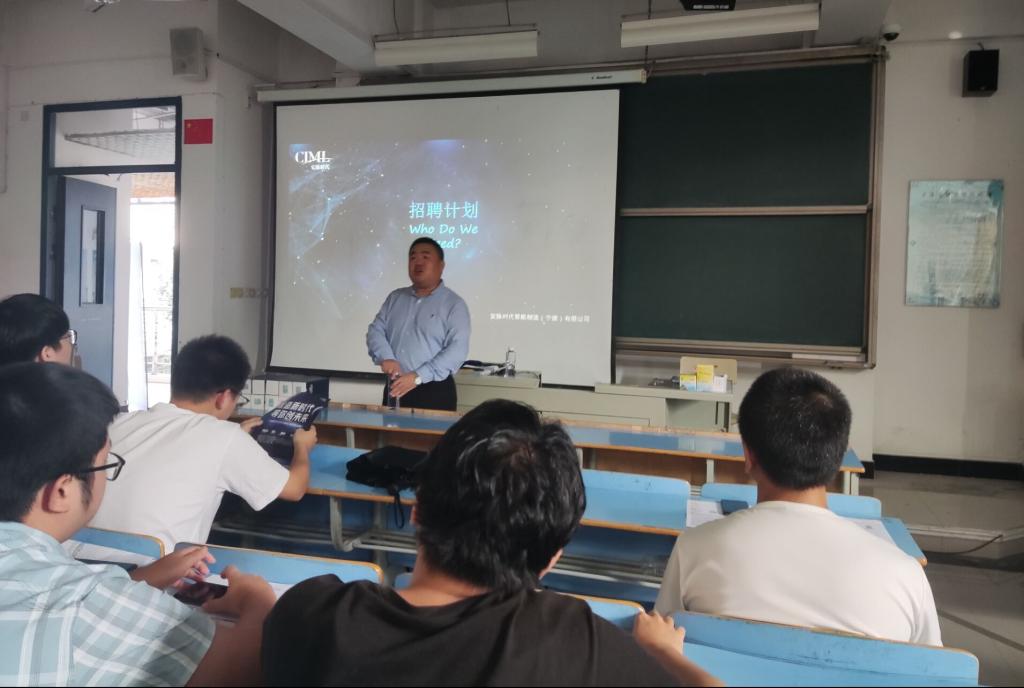 靳燕刚总监首先对安脉时代进行了简明扼要的介绍,指出安脉时代是由安脉盛智能技术有限公司和宁德时代新能源科技有限公司深度合作而成立的合资公司,是专注于智能制造、工业大数据、工业人工智能应用的国家高新技术企业,具有广阔的就业前景和发展空间。其后,人资专员张巧兰介绍了安脉时代团队技术、产品应用以及企业的核心价值观,并对本次招聘的人才岗位、福利待遇以及入职员工的培养方案做了详细的说明。会上,毕业生们就招聘信息提出了疑问并获得了相应的解答,同学们纷纷投递了自己的应聘简历。