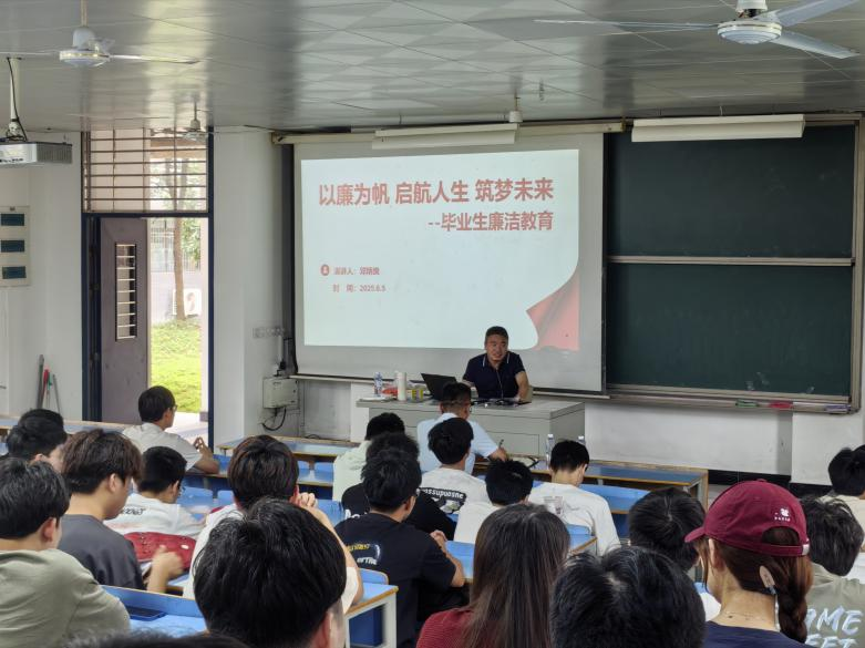 此外,邓科长还强调了慎重选择社交圈、保持适当职业距离以及严格遵守规章制度的重要性,为毕业生提供了宝贵的职场建议。讲座最后,邓科长寄语毕业生,希望他们能够以廉为帆,启航人生,筑梦未来,成为社会的栋梁之才。