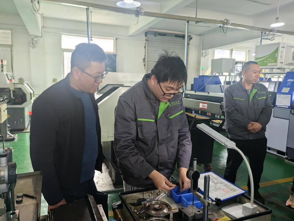 王洪涛院长一行与企业负责人、实习指导师傅等进行座谈,详细了解学生岗位分配、技能培训、食宿保障等情况。企业方称赞实习生们踏实肯干、适应力强,已能独立完成基础工作。座谈会上,企业总经理介绍了化油器产业发展趋势及实习生培养方案。王洪涛院长回应,将结合企业需求优化教学内容,推动教师深入企业实践,实现校企资源共享。双方还就实习生留用、订单式培养达成初步共识。