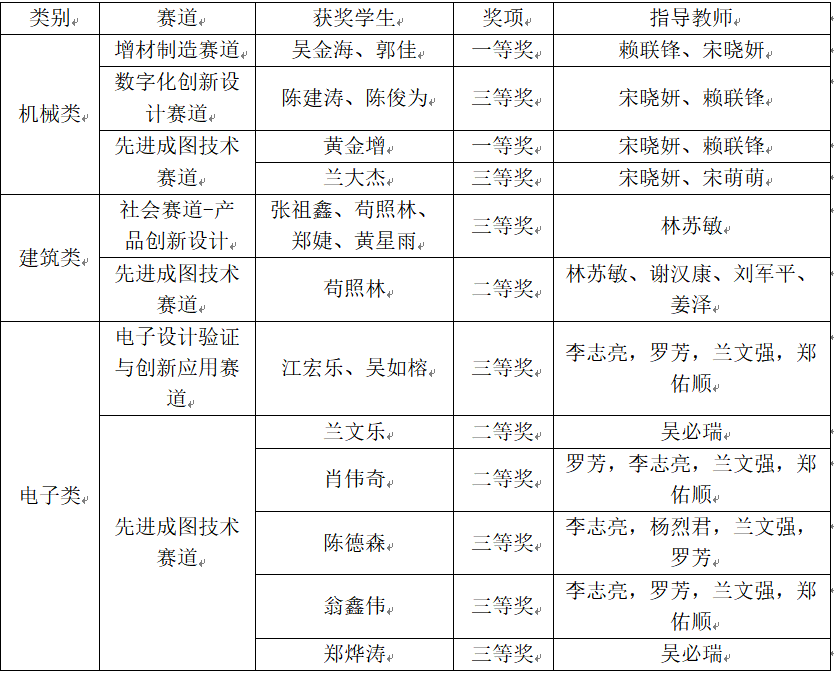 第十八届全国大学生先进成图技术与产品信息建模创新大赛国赛获奖名单